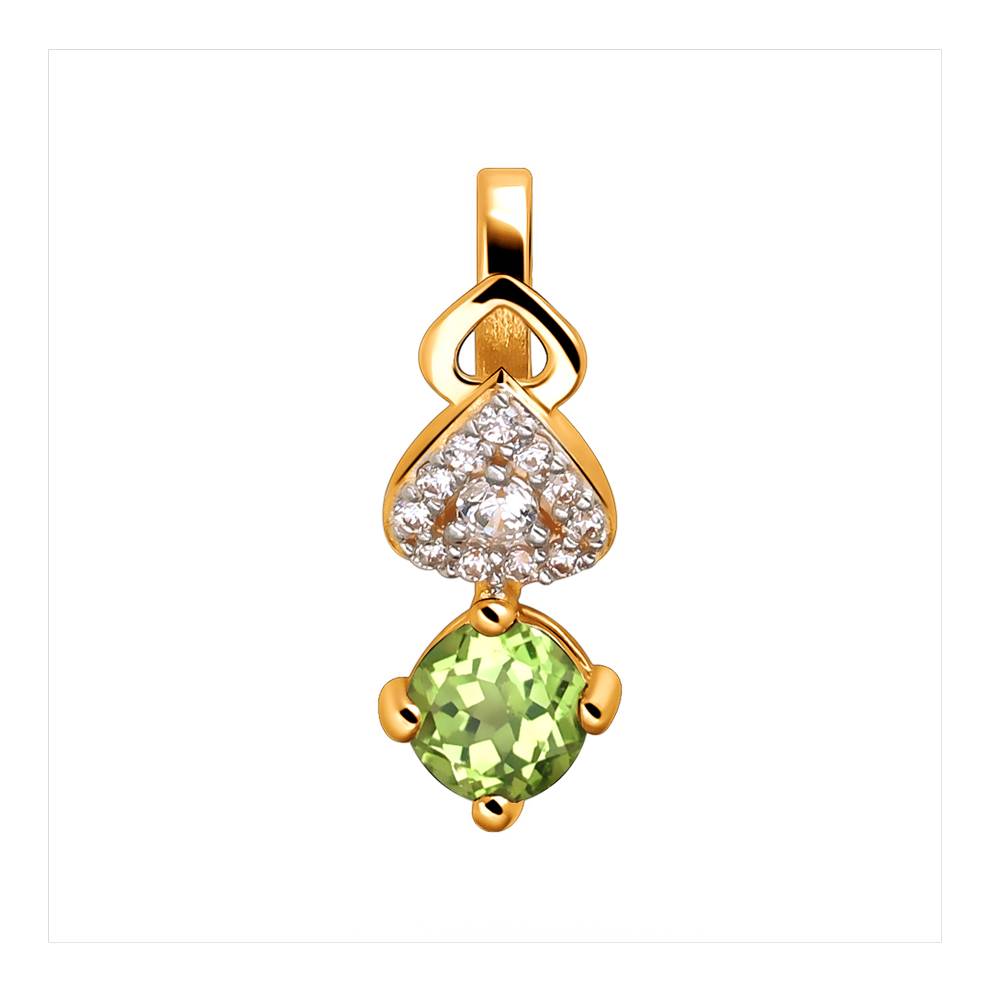 Подвеска из красного золота c хризолитом и фианитом (01П3110965-4)