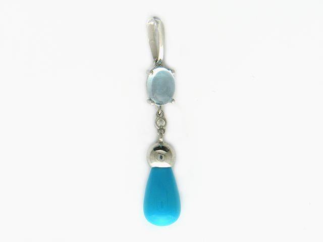 Подвеска из белого золота c топазом и бирюзой (01П324460-1)