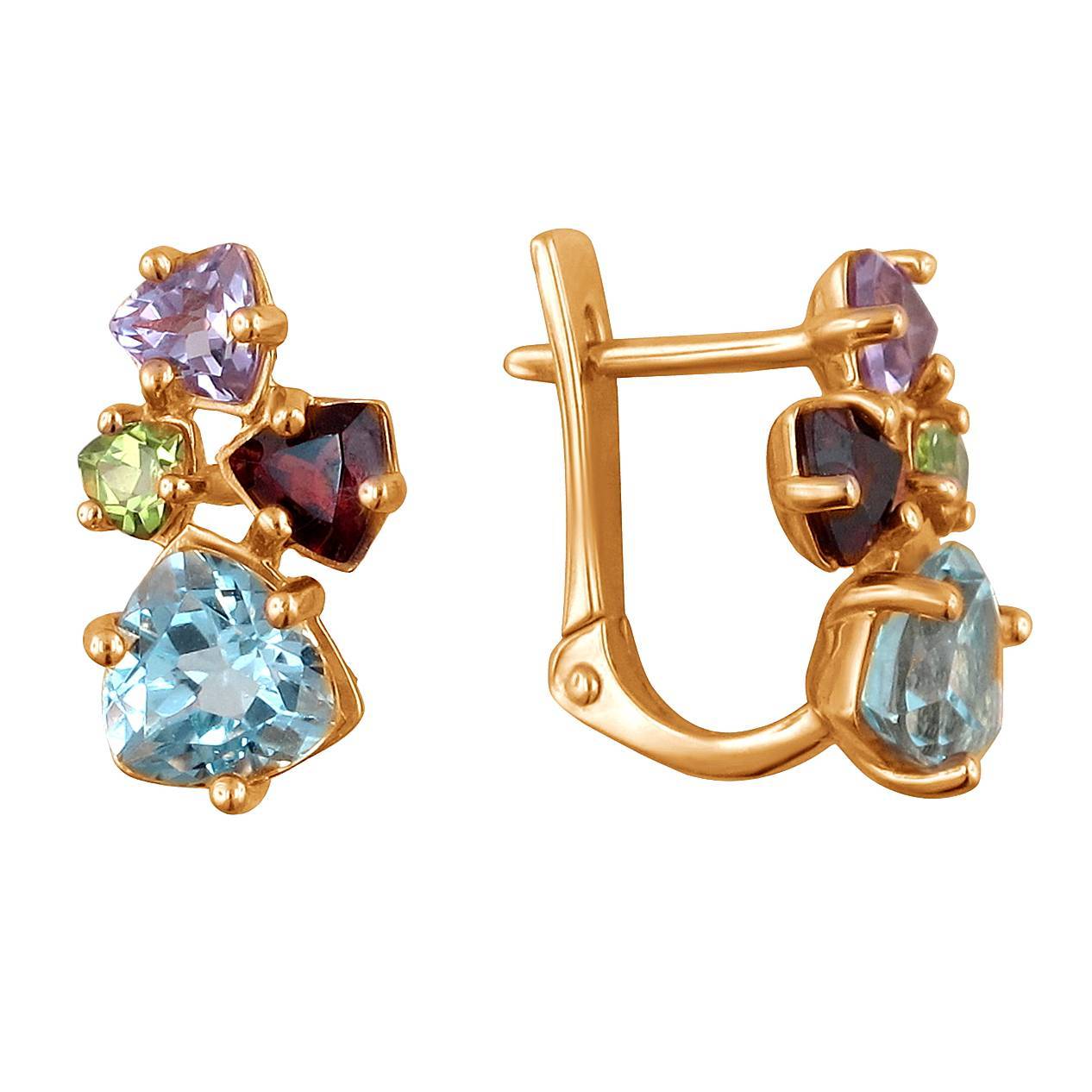 Серьги из красного золота c аметистом и хризолитом (01С315674-1)