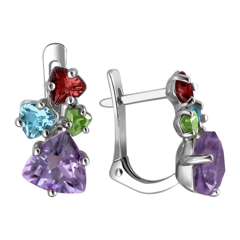 Серьги из белого золота c аметистом и хризолитом (01С325674-5)