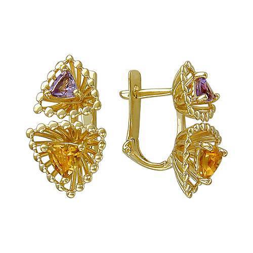 Серьги из желтого золота c аметистом и цитрином (01С338008)