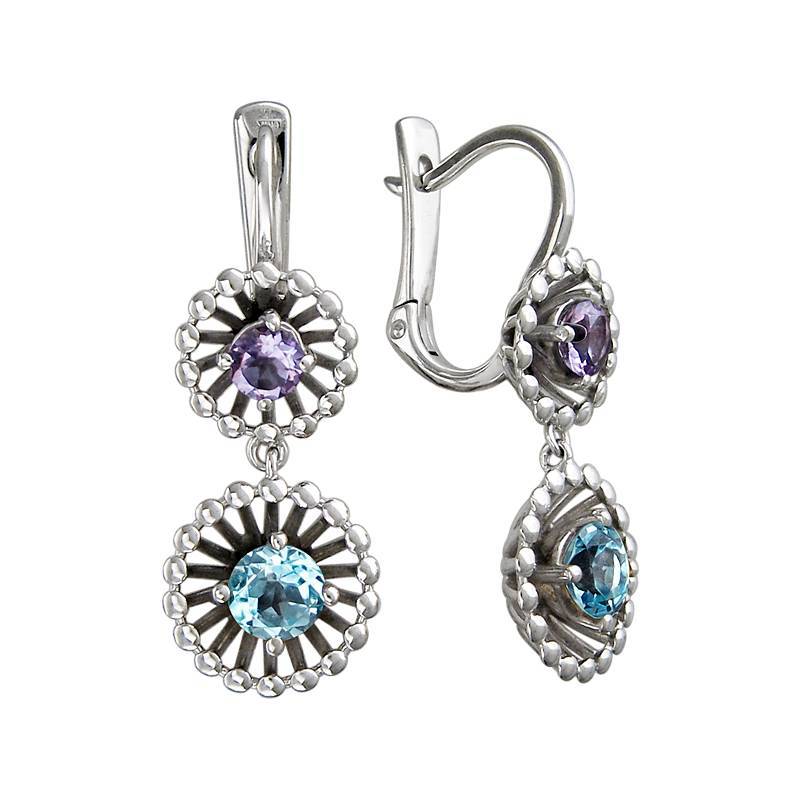 Серьги из серебра c аметистом и топазом (01С358006-2)