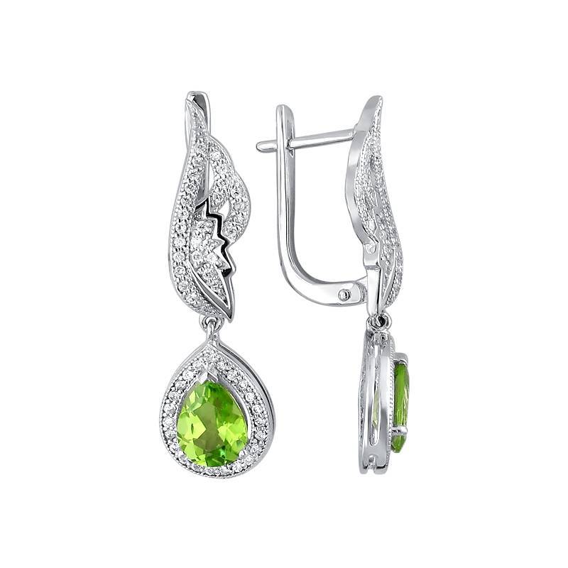 Серьги из серебра c хризолитом и фианитом (Г11С351121PE)