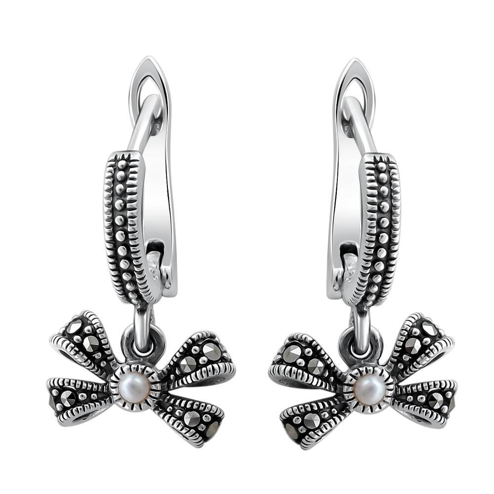 Серьги из серебра c жемчугом и марказитом (С26С350721Ч)