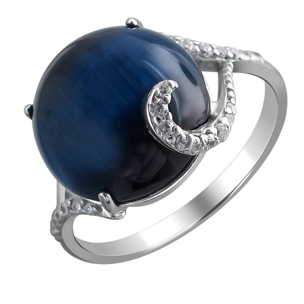 Кольцо из серебра c цирконием и кошачьим глазом (С3К252476)