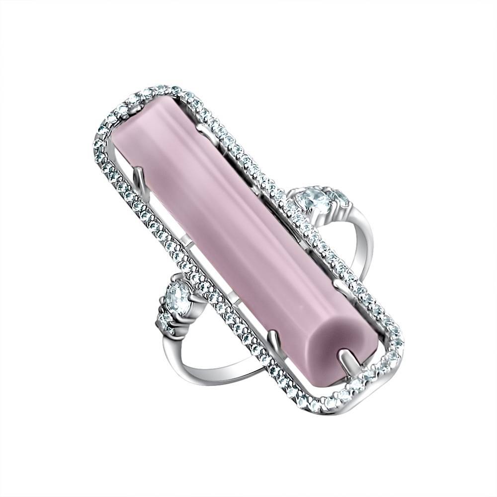 Кольцо из серебра c цирконием и кошачьим глазом (С3К253877)