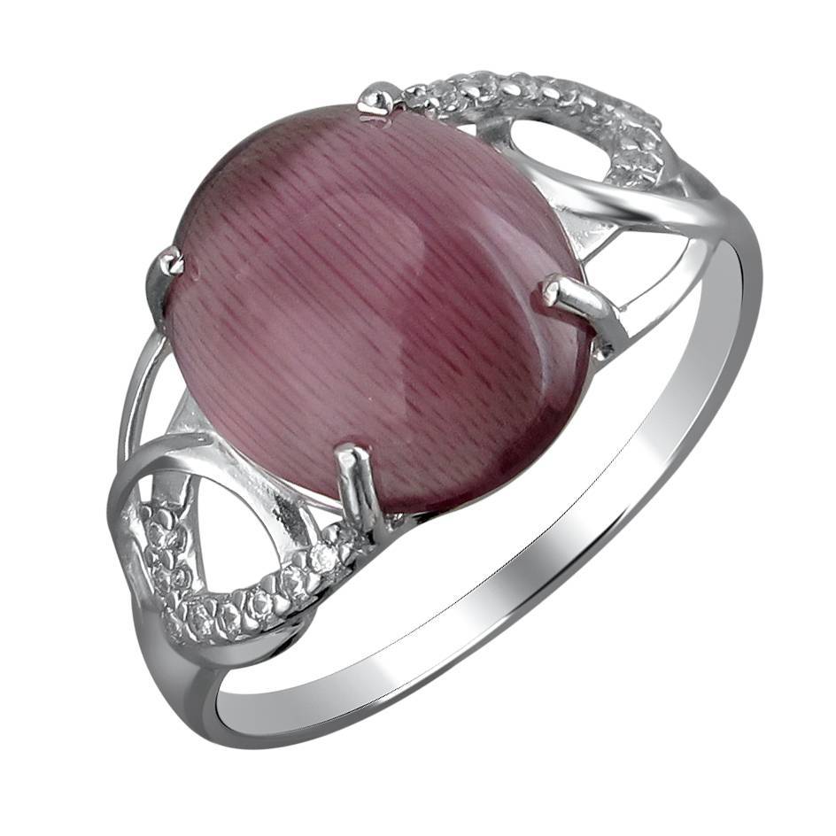 Кольцо из серебра c цирконием и кошачьим глазом (С3К255171)