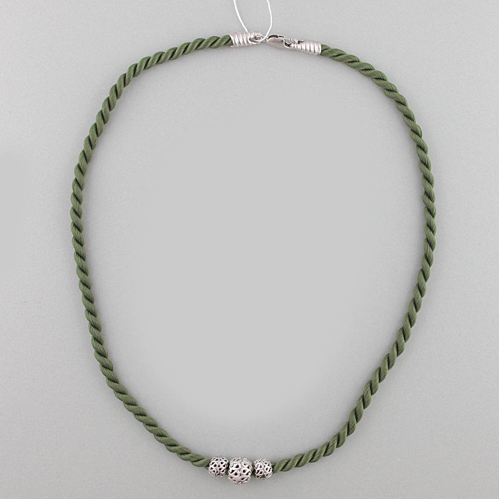 Колье каучук (шнурок) из серебра c текстилем (С4Л050011416РСЗ)