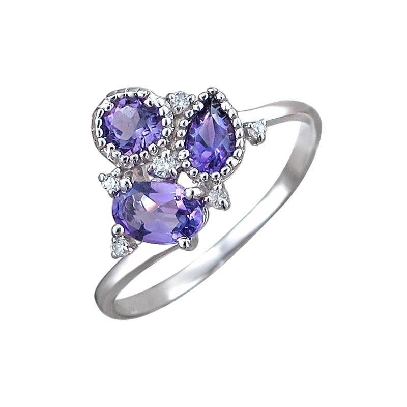 Кольцо из серебра c аметистом и фианитом (Т19К351385Ам)
