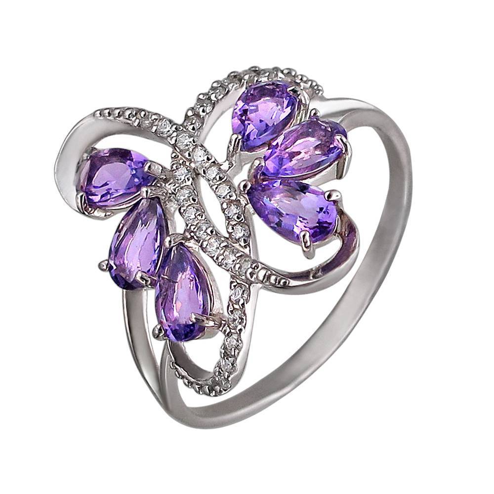 Кольцо из серебра c аметистом и фианитом (Т19К352021Ам)