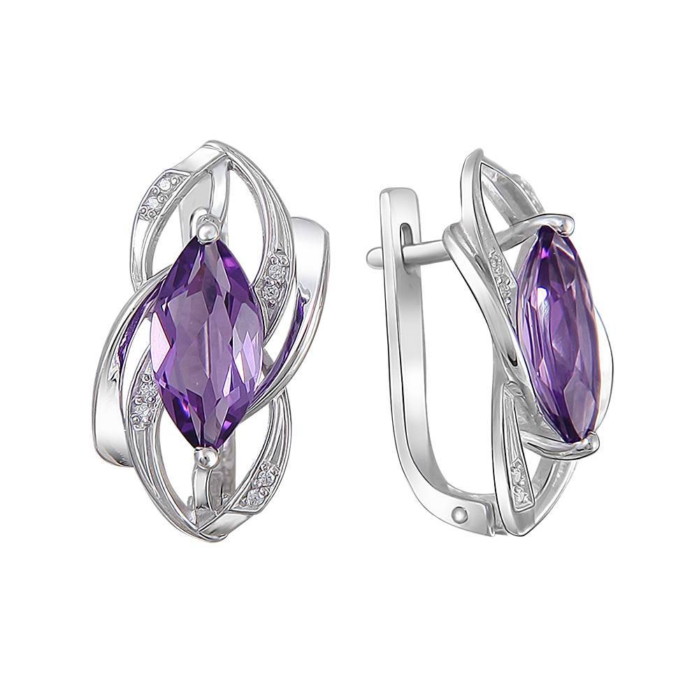 Серьги из серебра c аметистом и фианитом (Т19С352363Ам)
