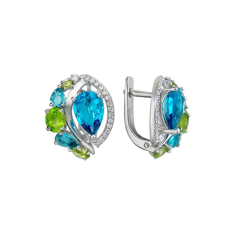 Серьги из серебра c хризолитом и фианитом (Т19С354152М3)