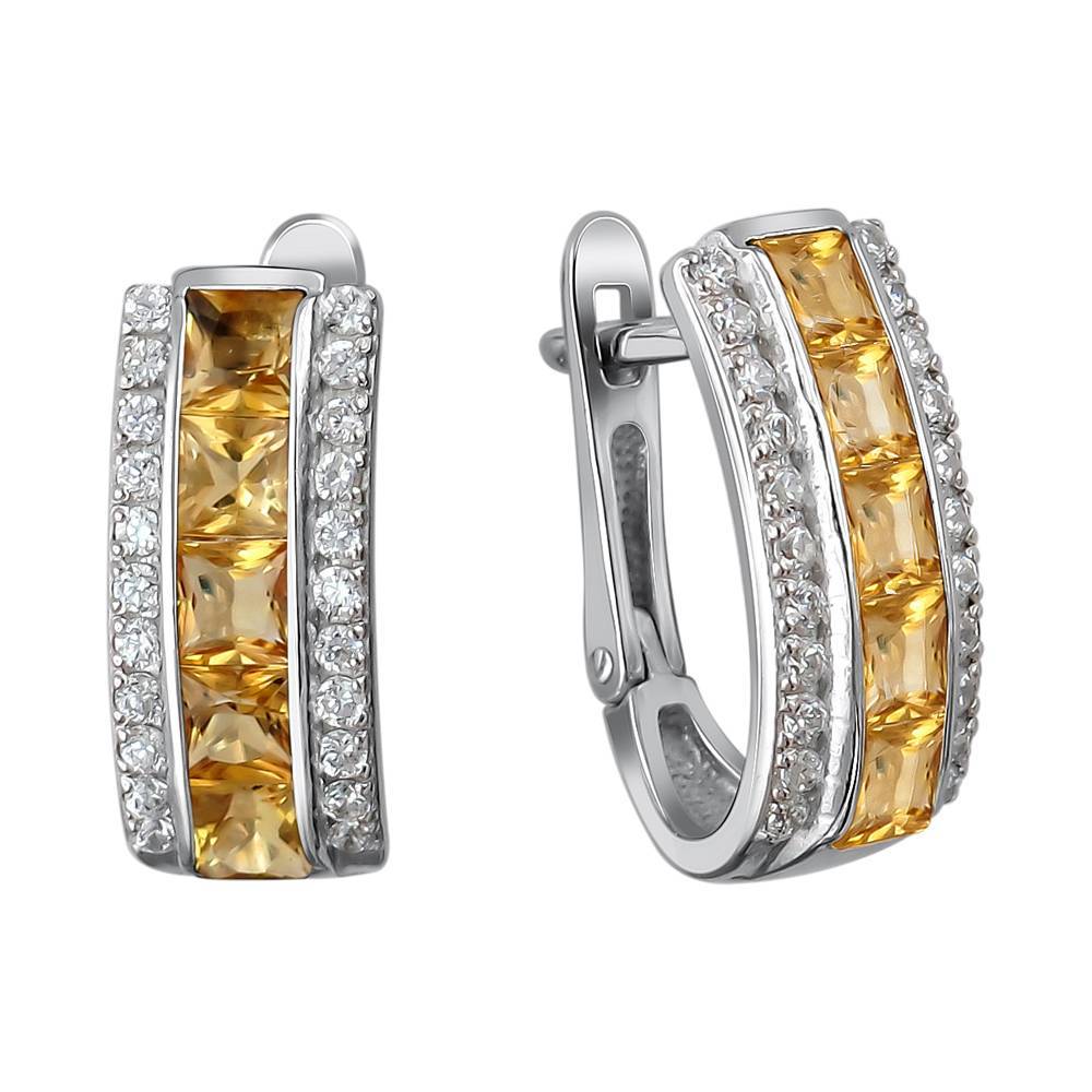 Серьги из серебра c фианитом и цитрином (Т19С35976Ц)