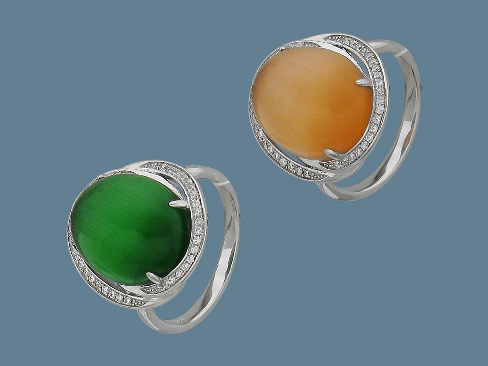 Кольцо из серебра c цирконием и кошачьим глазом (Т4К2521000897)