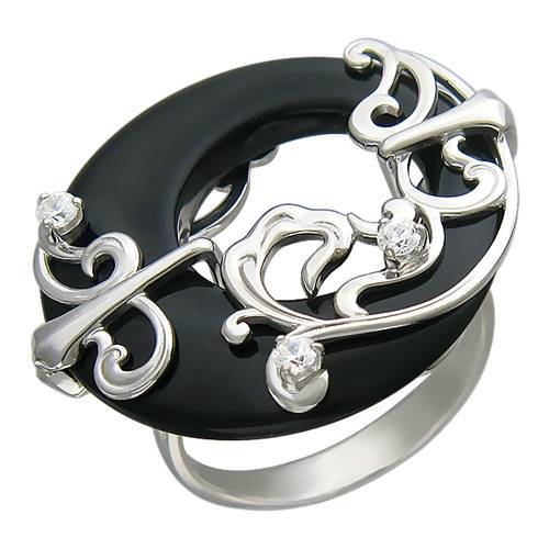 Кольцо из белого золота c фианитом и агатом (01К426131)