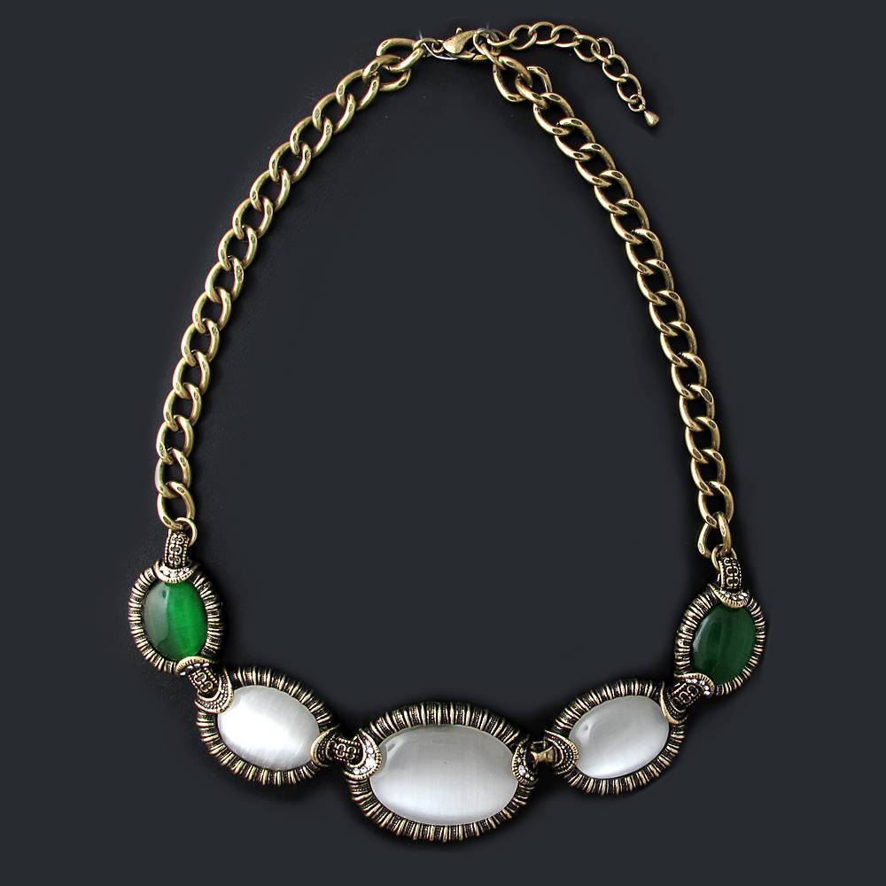 Колье из бижутерии c стеклом и кошачьим глазом (У39Л4000159)