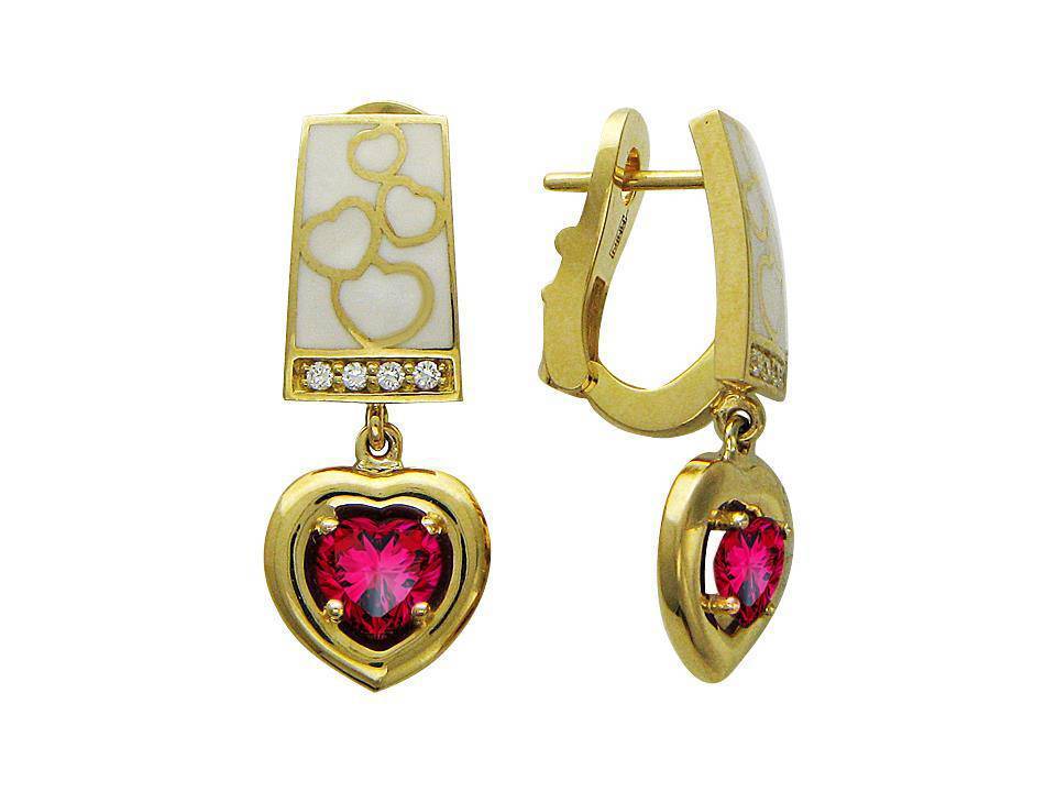 Серьги из желтого золота c рубином и бриллиантом (01С645558Э-1)