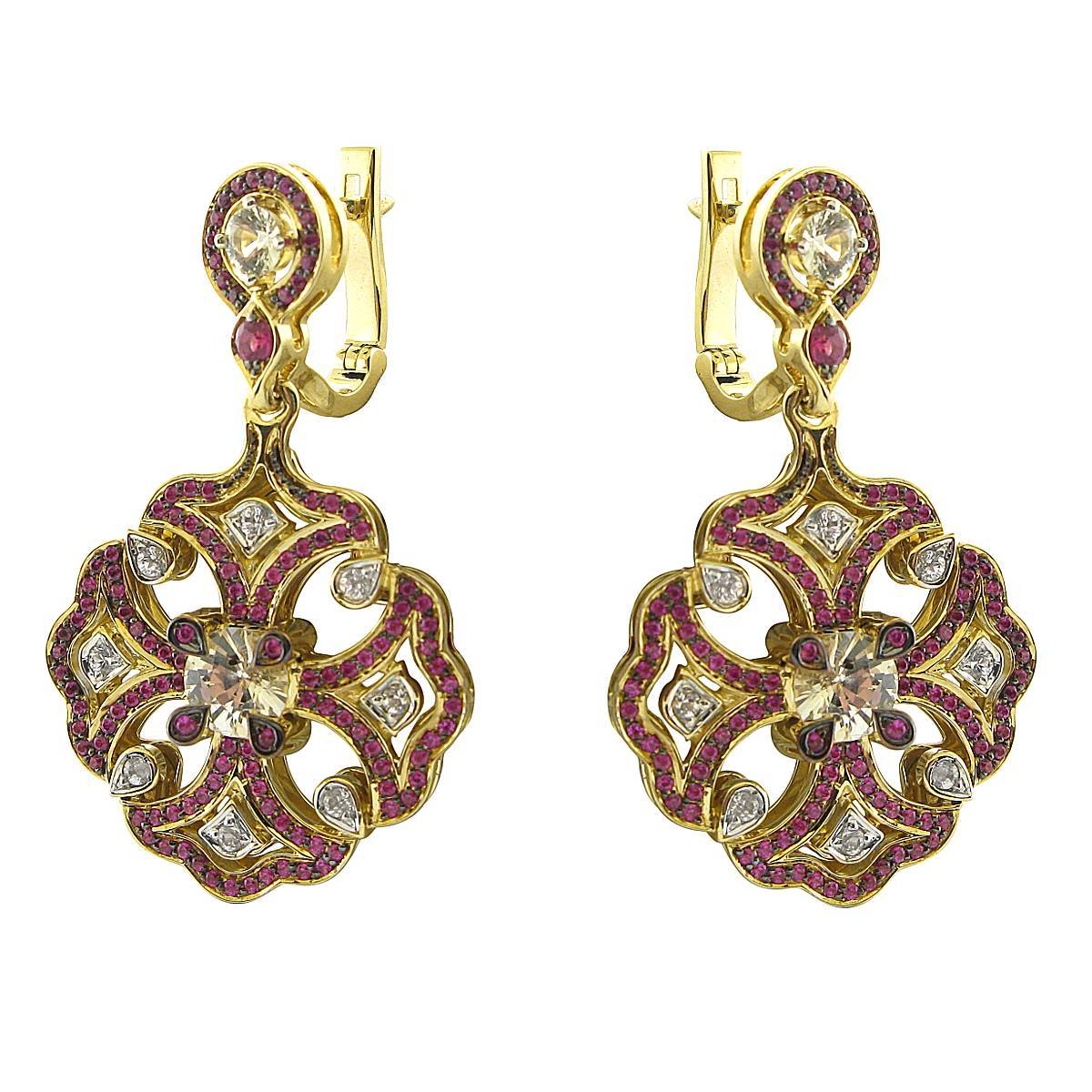 Серьги из желтого золота c рубином и сапфиром (01С537977-1)