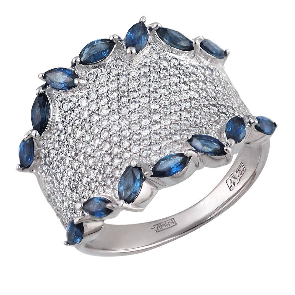 Кольцо из белого золота c бриллиантом и сапфиром (01К673921-1)