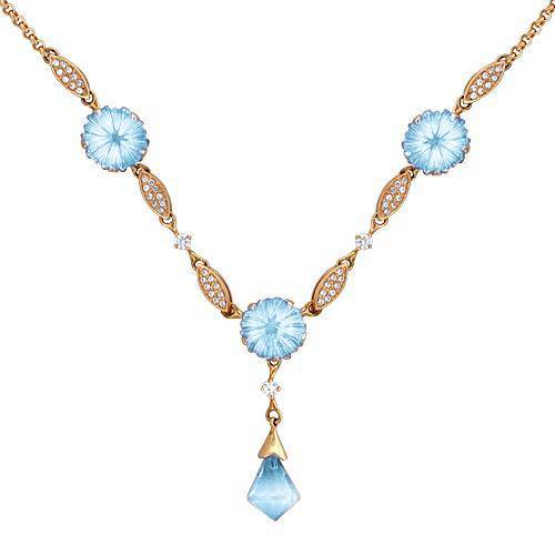 Колье литьевые из красного золота c топазом и фианитом (01Л310691-2)