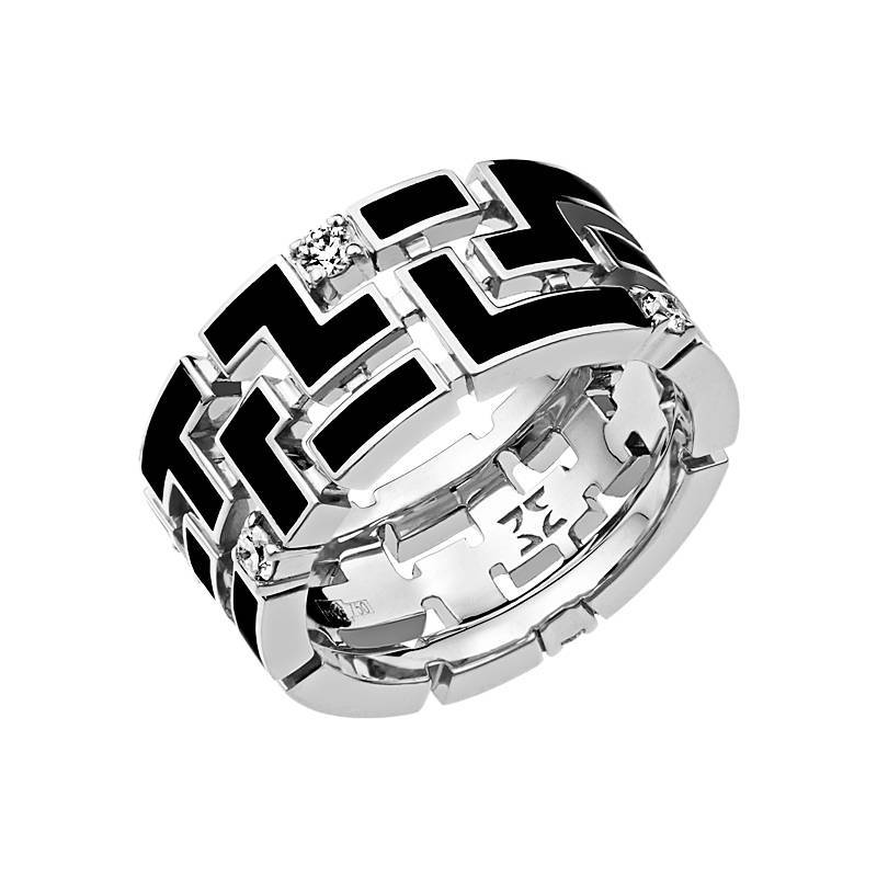 Кольцо из белого золота c бриллиантом и эмалью (01К676391Э)