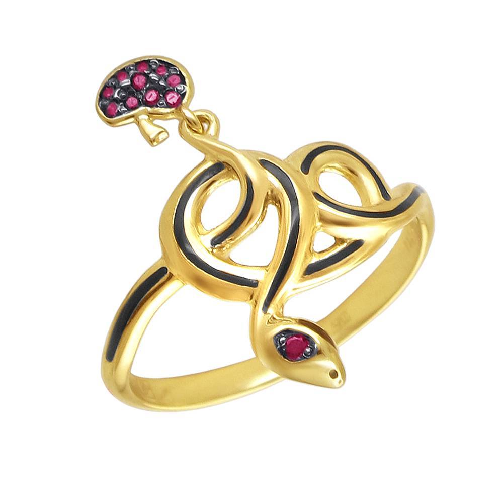 Кольцо из желтого золота c эмалью и фианитом (01К2311539Э-1)