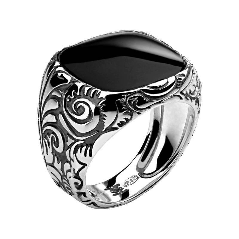 Печатка из серебра c агатом (01Т458789Ч-1)