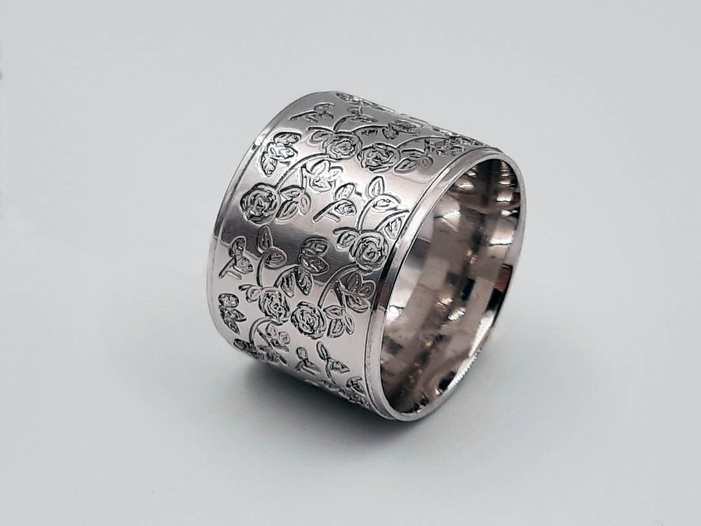 Кольцо из серебра 925 пробы, плоское шириной 15 мм, с флористическим узором. В комфортной посадке - удобно одевается и сидит на пальце.
