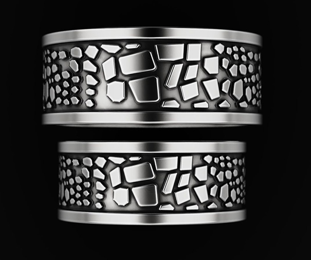 Комплект парных обручальных колец оригинальных, с барельефом (И-722158)