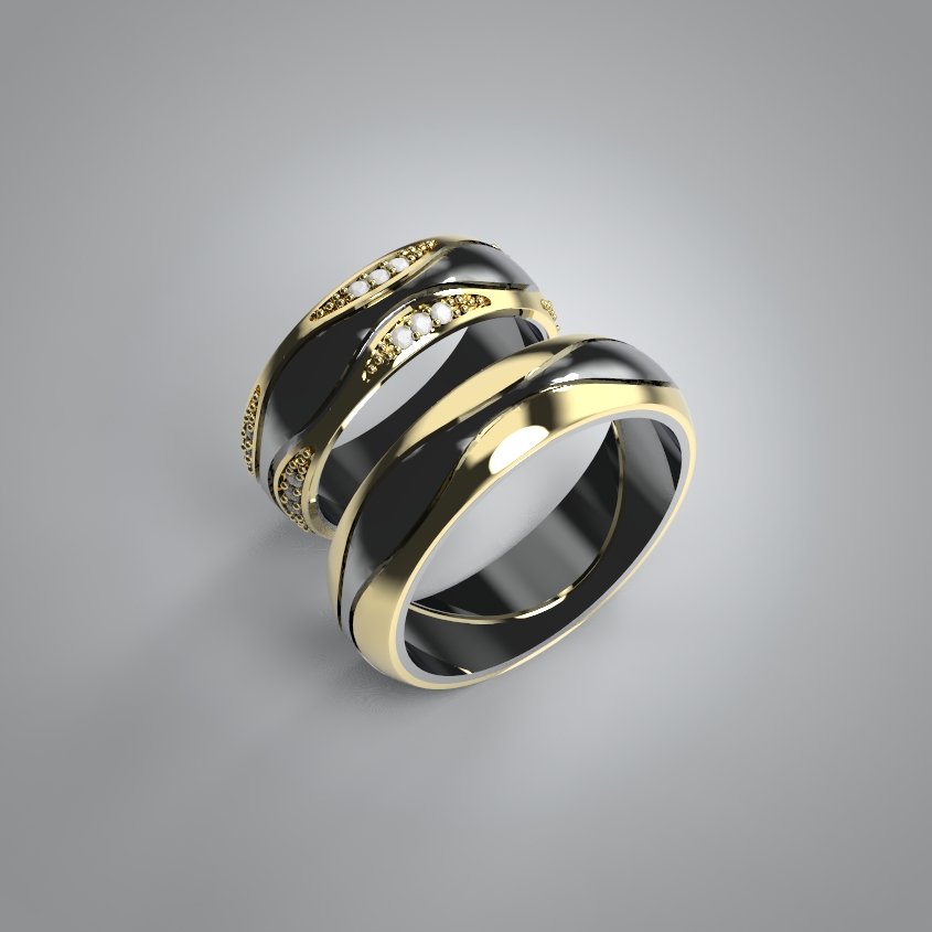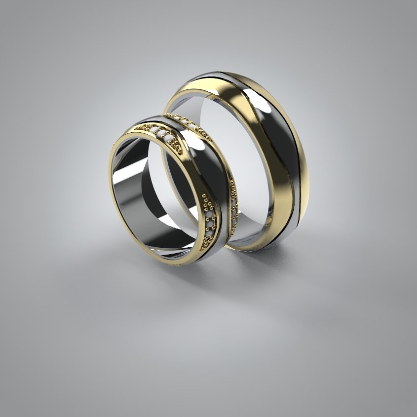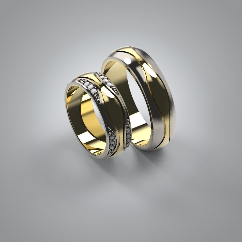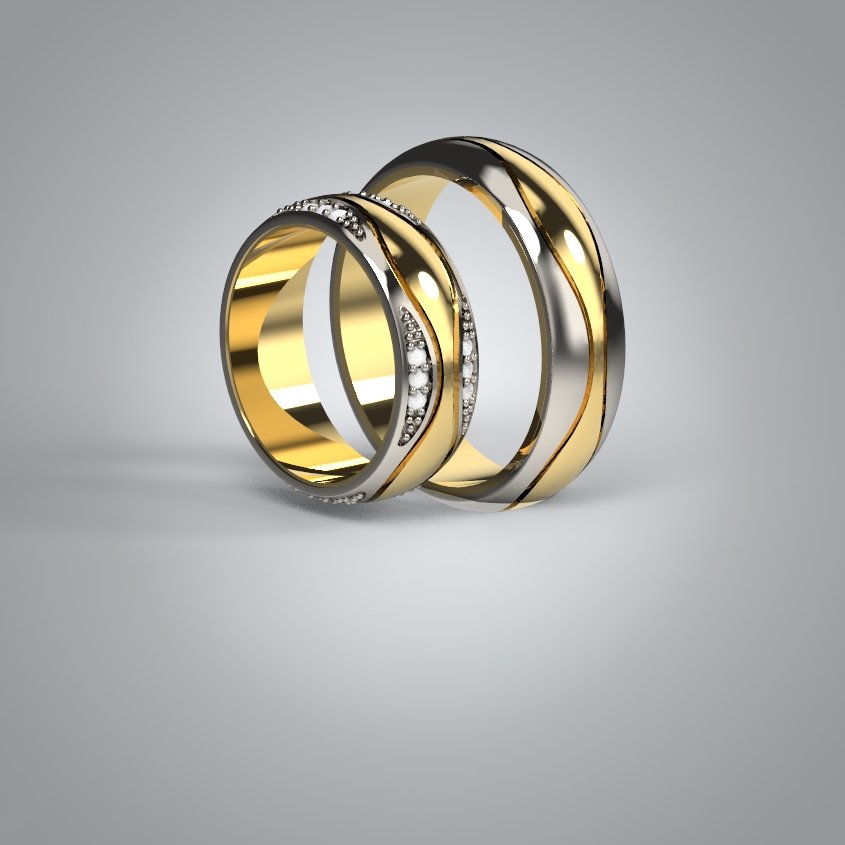 Обручальные кольца парные двухцветные с бриллиантами (И-2302880)