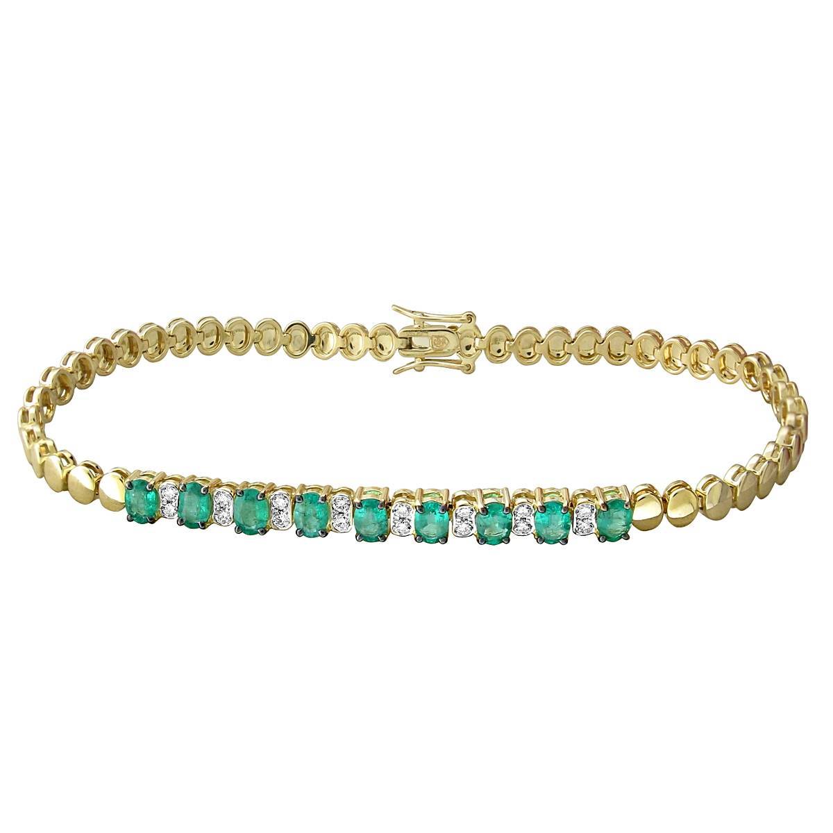 Браслеты литьевые из желтого золота c бриллиантом и изумрудом (01Б632649-3)