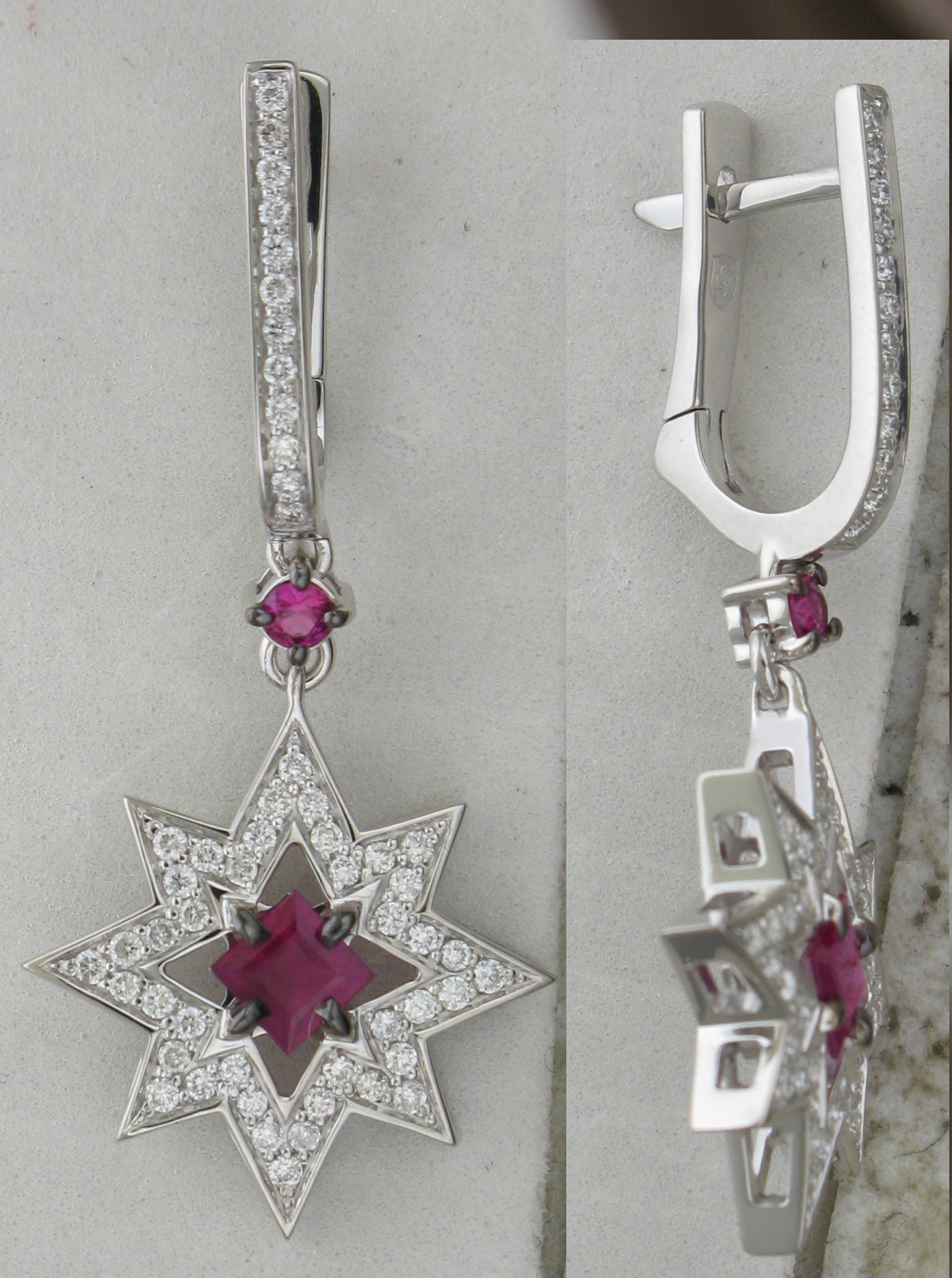 Серьги из белого золота c рубином и бриллиантом (01С6212342-1)