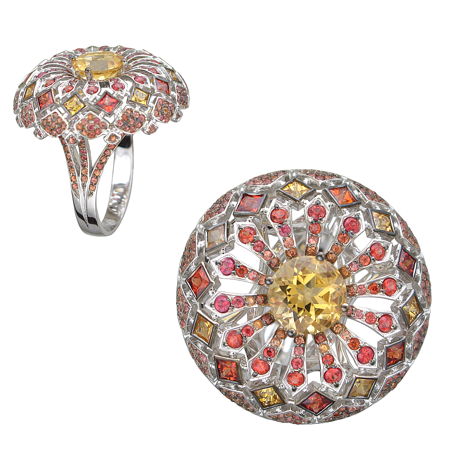 | Вставки | САПФИР ФАНТАЗИЙНЫЙ КВАДРАТ 0/0 14шт.,1.49ct САПФИР ФАНТАЗИЙНЫЙ КРУГ 0/0 238шт.,1.48ct ЦИТРИН КРУГ 0/0 1шт.,1.74ct |
