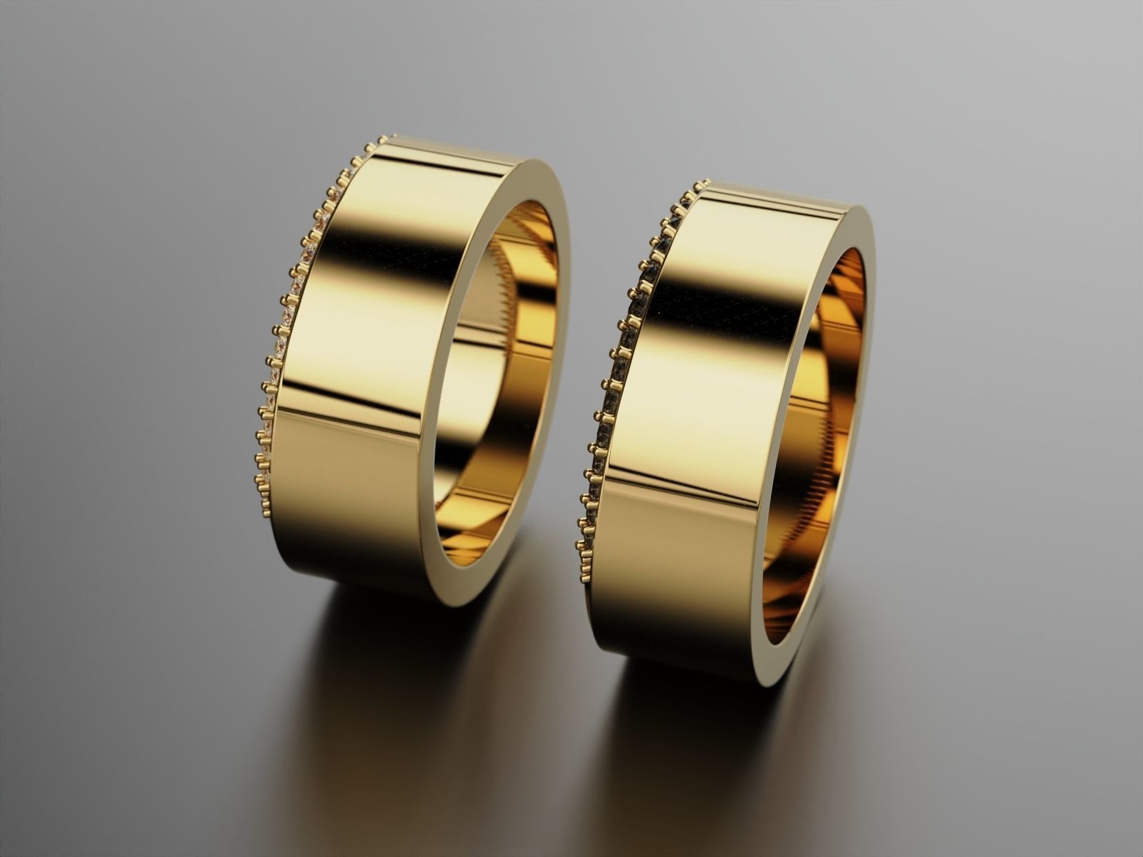 Обручальные кольца плоские с бриллиантами по торцу (И-2906408)