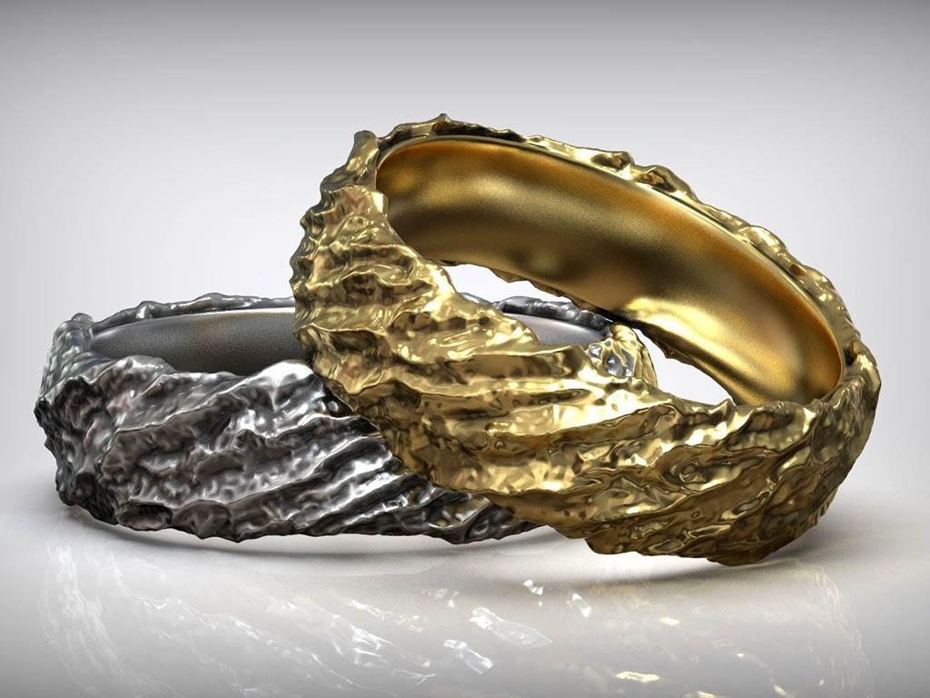 Обручальные кольца с орнаментом коры дерева (3897191 )