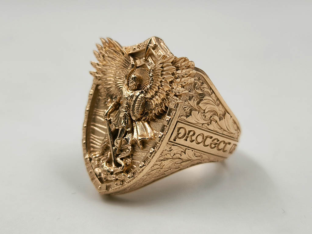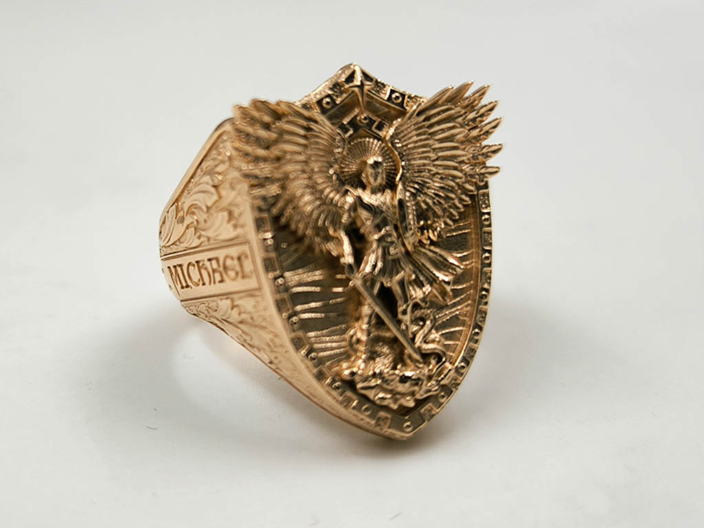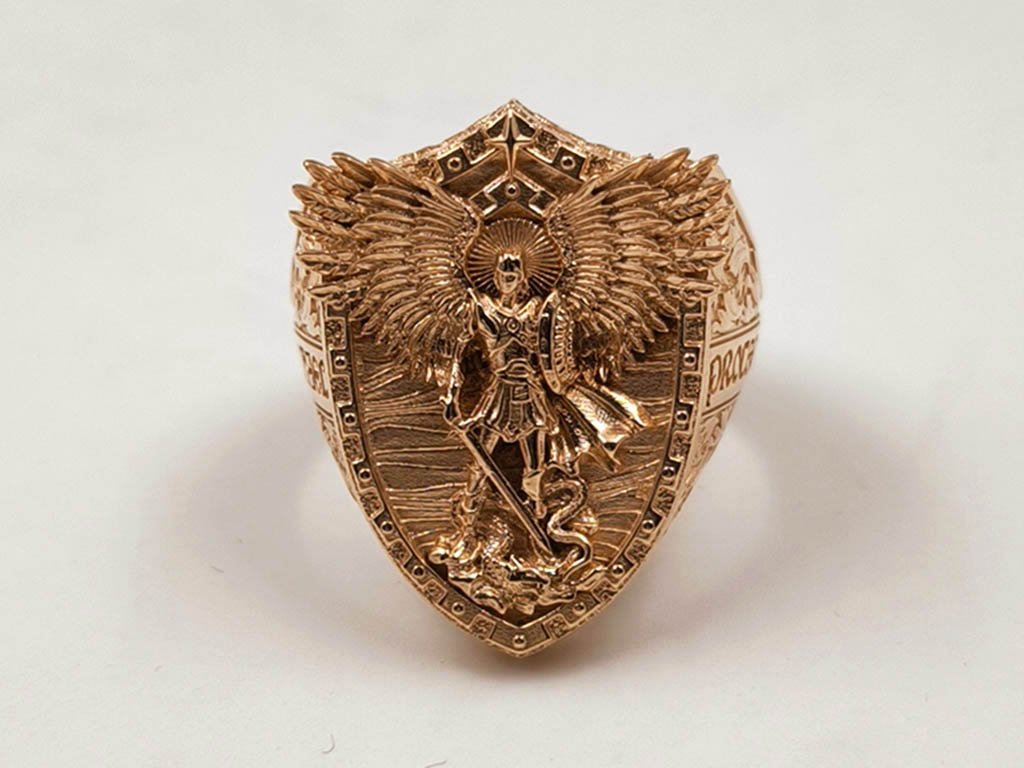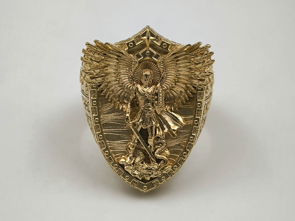 Запечатлен величественный образ Архангела, символизирующий его мощь и благородство. Это украшение несет в себе глубокий символизм, представляя своеобразный оберег и источник защиты для своего обладателя.