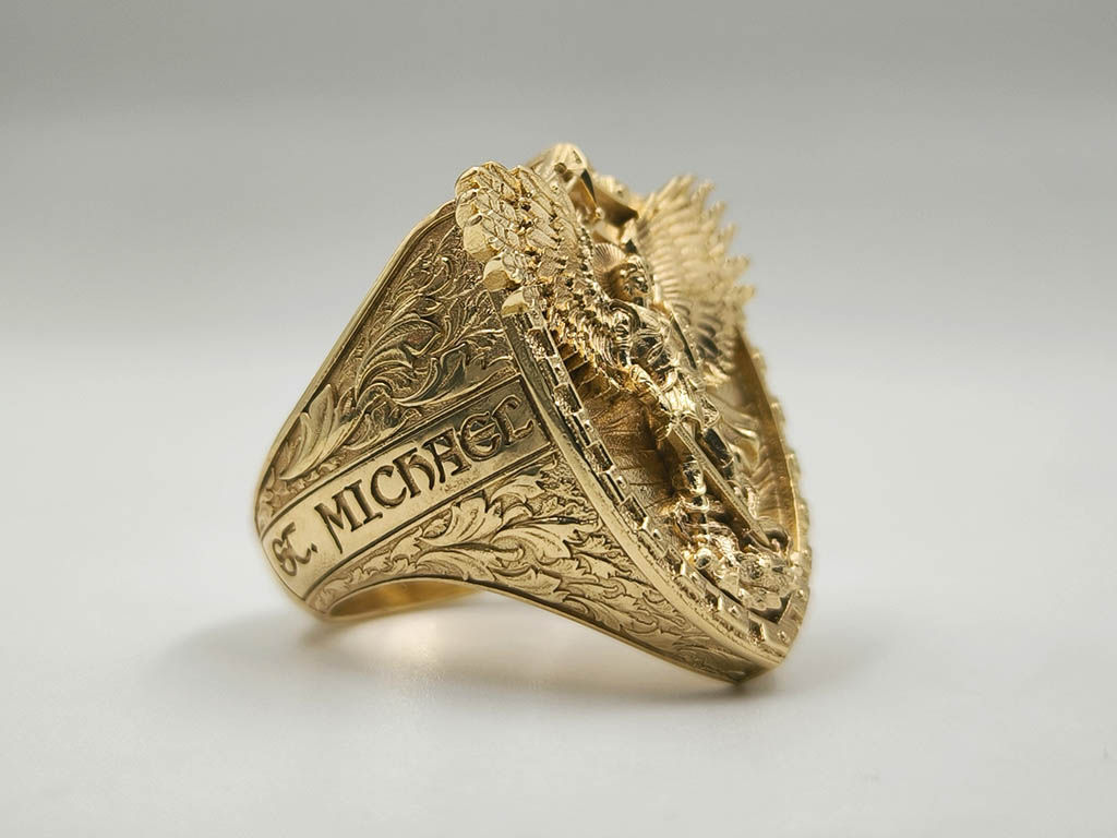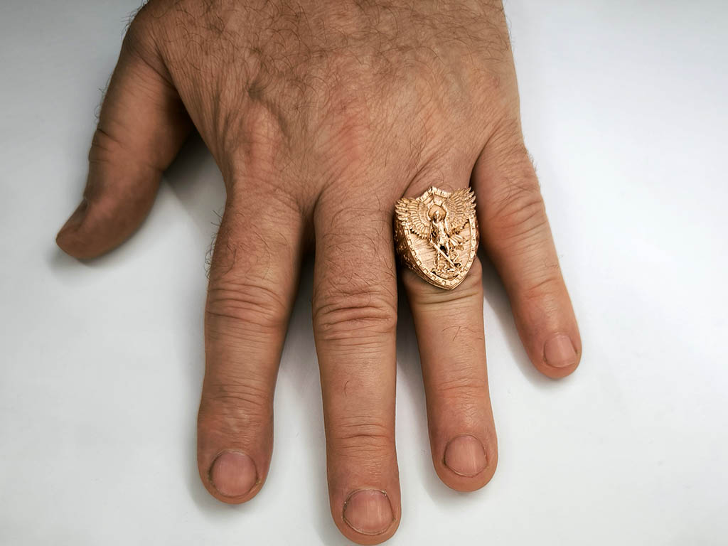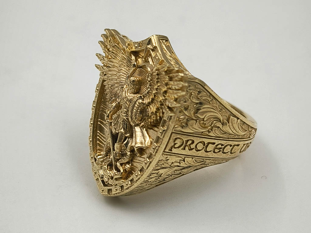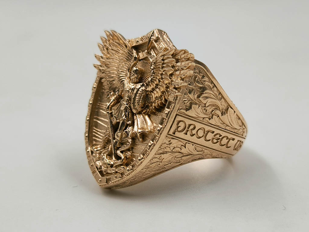 Запечатлен величественный образ Архангела, символизирующий его мощь и благородство. Это украшение несет в себе глубокий символизм, представляя своеобразный оберег и источник защиты для своего обладателя.