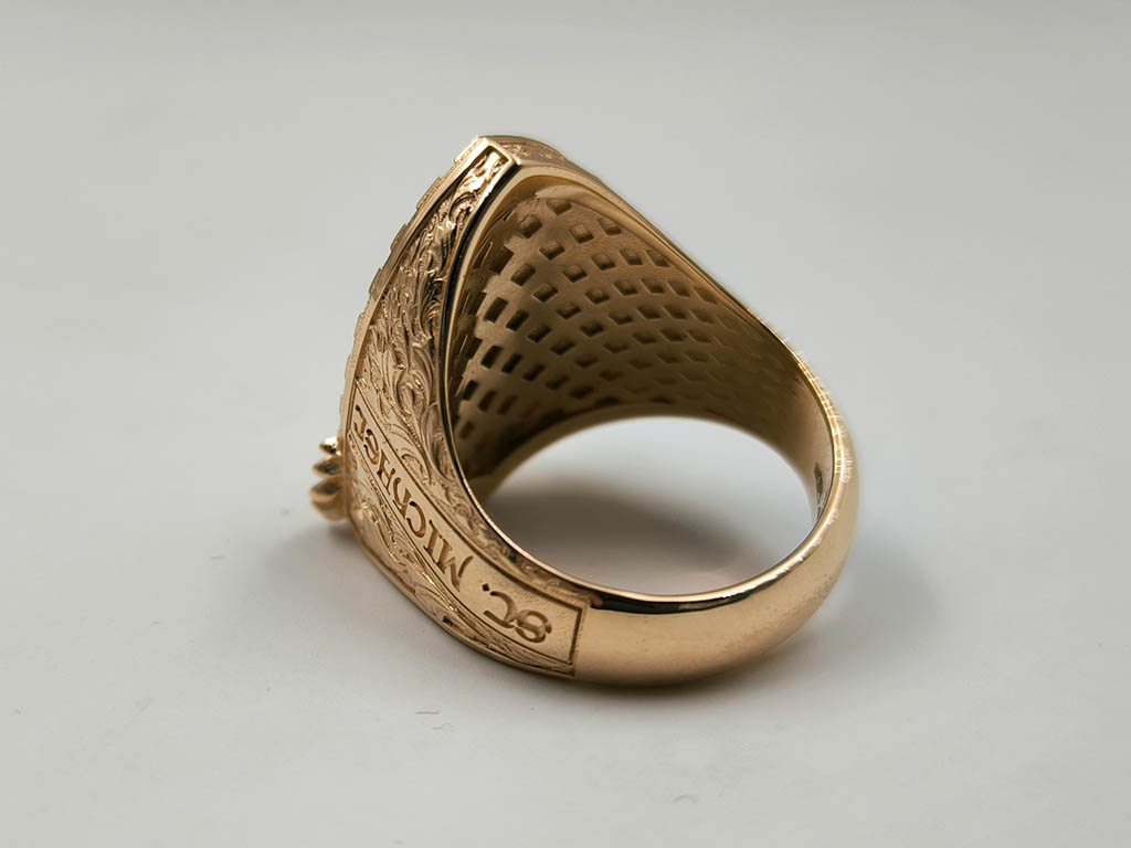 Ориентировочный вес кольца 33 г. при 585 пробе.