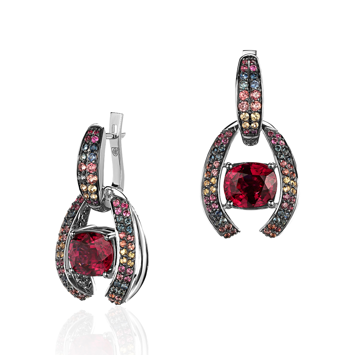 Серьги с родолитом из белого золота