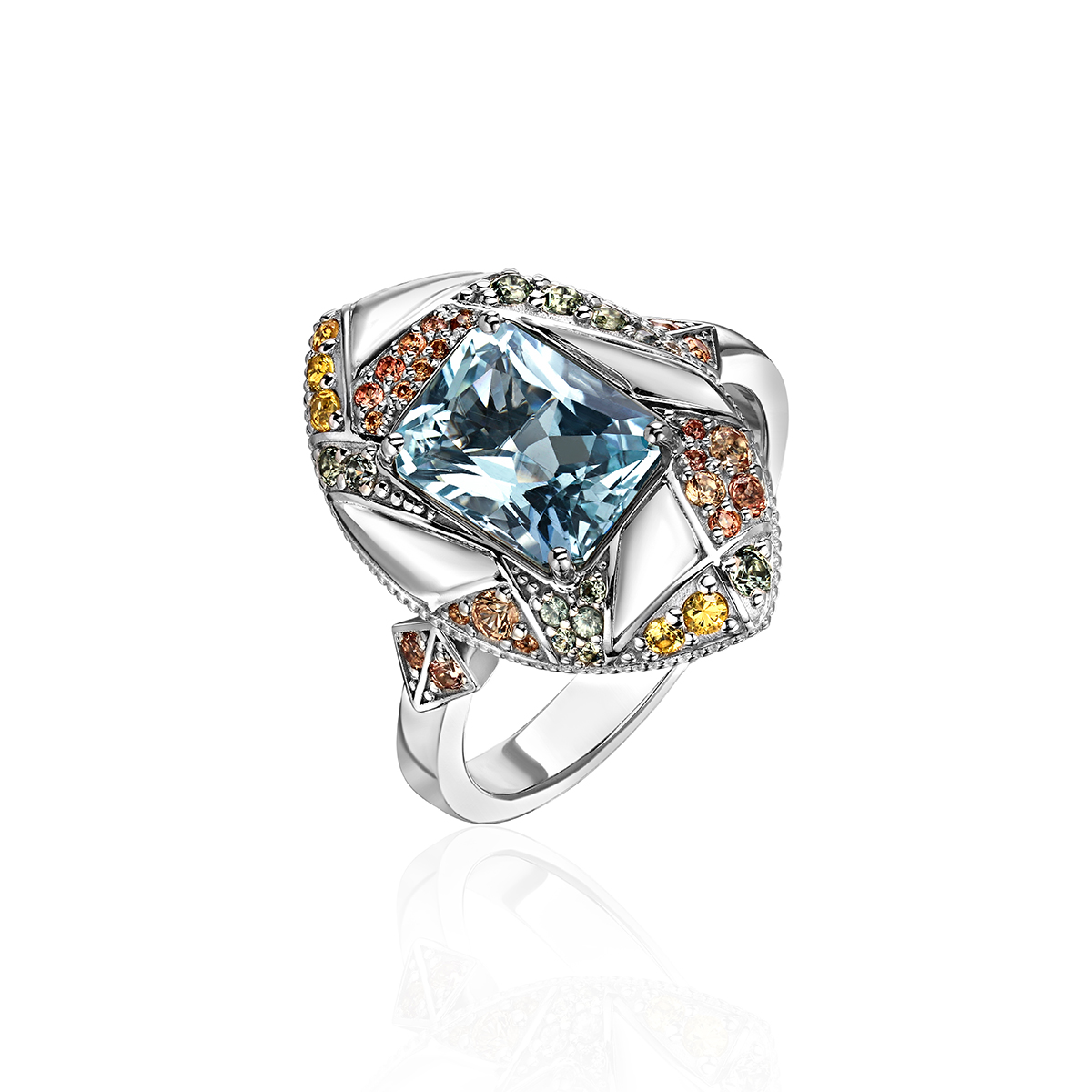 Кольца с аквамарином из белого золота